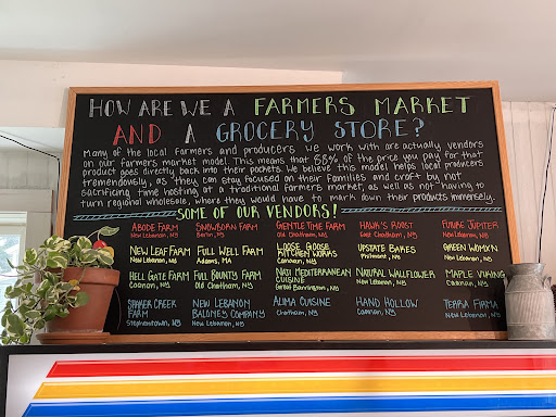 Read moreReally nice to see this market in New Lebanon. It’s great to get fresh food from local farmers without having to wait for a particular day of the week. It is a small market, but it is growing and there’s a nice collection of dried, frozen, and canned goods. I also know the stores is intended to support local farmers and businesses. there’s a certain color of price tag in the store that represents local products, and those are marked up less than non-local goods, which have a different color of tag.