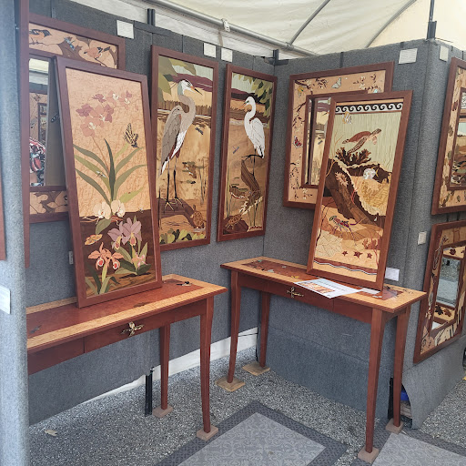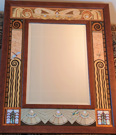 Read moreSaw this gorgeous mirror at the Tyler State Park Craft fair in Northampton, PA, on October 17, 2021. Wasn't planning to spend more than $1000 at the craft fair, but this is a beautiful, one-of-a kind piece. I love looking at, finding new details each time. It is not painted. The different colors come from 16 different kinds of wood as well as iridescent mother of pearl and abalone. It features a dragon fly and bee with iridescent wings, a grasshopper, and ladybug -- all symbols of good luck. It now hangs proudly in the short hallway leading to my front door. It's the perfect spot and I can't wait to show it to...