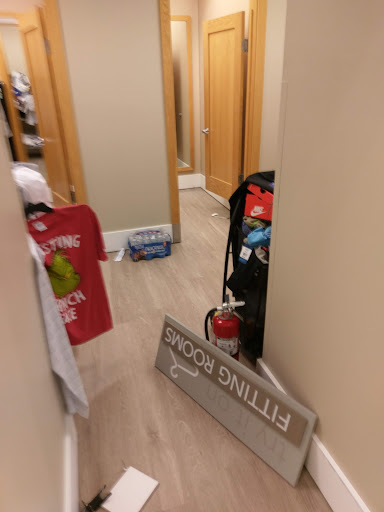 Just as I start shopping in the Men’s department, a work crew comes in and starts ripping and peeling the merchandising wallpaper off the walls. That was annoying and noisy but not a terrible inconvenience. I found a few items that I wanted to try on, so I went into the fitting room in the Men’s department to find that the work crew was using that fitting room as a staging area. Their tools littered the floor, merchandising signs were stacked in the doorway, and their crews’ case of water was in the middle of the area in front of the dressing rooms. Aside from the obvious construction debris, the dressing rooms themselves were filthy - clothes strewn all over, dirt and dust all over the floor. It was obvious that no one had cleaned in there in quite a while.