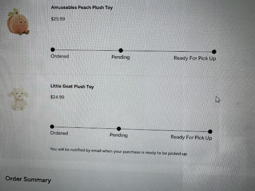 Read moreReally bad experience! I saw yesterday there is Jellycat peach online and then called the store to confirm. The guy was kind enough to tell me they just restock the peach and told me I can place an order. Then I place my order for pick up immediately. I got my email saying my order is ready to pick up and in my account, my peach is also ready for pick up. But after my husband drove half hour to the store, the stuff told him peach was out of stock and they cancel my order in front of him. I called the store to complain and they blamed us not checking the email for cancellation!!!!!!!! My account was still showing the peach is ready for pick up!!!!!!