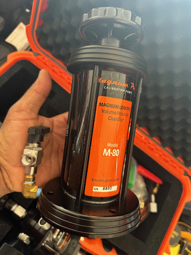 While I wasn't initially considering the M-80 (Low Pro Pressure chamber) due to my need for high accuracy (.01% in boiler fuel-air mixture), I was impressed by its performance. Though it comes in the bulky side and a 3-way valve that isn't my favorite, (and i don't care about the fluor green cordless screw, can't remember the name, start with a "R" from HD... lol...lol...) the accuracy when used alone side with the Red 1 is remarkable. It even includes a soft handbag with a shoulder/neck strap, making it convenient to carry up ladders.