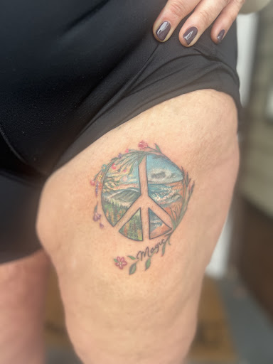 Read moreI am in love with the tattoo that Regina created for me. I originally went to her in June for a touch up of a small tattoo I had gotten somewhere else after seeing her beautiful cover up work on Instagram. While I was there, I told her about an idea that I had for another piece for my upper thigh. I told her I wanted it to include a mountain, a beach or a wave, a peace sign, and the word magic, and Regina designed something that captured my idea so perfectly. This tattoo is very meaningful to me: It's a mountain and an ocean for where I grew up and where I live now and a peace sign for my eternal search for peace which I find in the mountains and at the beach, and the word magic for when I doubt myself to remember we all have magic inside of us. The beach picture we used is actually a drawing of a picture my son took on my beach in Long Beach. Regina was so patient with me and I enjoyed the conversation we had while she was creating her masterpiece on my leg. The shop is so cute, eclectic, and clean, and the aftercare bag that she gave me was great. I have referred one friend so far, and even though I said I wasn't getting any more, I have another tattoo in mind already! Thank you so much for memorializing my lifelong journey where I can look at...