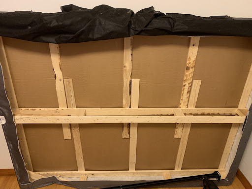 After taking the fabric completely off I noticed that the platform is in fact constructed with cardboard and was already cracked and repaired. This literally looks homemade and was sold to me as a NEW platform. Please make sure what they are selling you is...