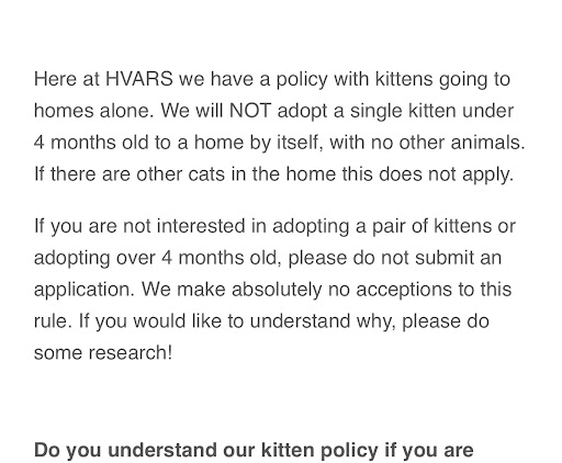 My girlfriend and I recently rescued an abandoned adult male cat from the streets of Newburgh whom we named Rufus. We wanted to help at least get him vaccinated, neutered and healthy - hoping that we could let him try to be a part of our family. Unfortunately, my normal vet - where we have done this already many times - is booked solid until January. Not wanting him to suffer on the streets that long, we decided to try HVARS - thinking that, because they are a nonprofit, they would be a good alternative. HVARS charged us for an initial exam, but did not actually complete an inspection or do any of the bloodwork panels listed - all of which I have seen cats get when I take them to my normal vet for their initial wellness visits. The vet-tech (or whatever non-doctoral certification the assistant has) poo-poo’ed us when we asked why; “well, he’s a stray. Also. That costs extra, so we didn’t do it.” when even talking about the exams that were obviously included. Fine. I have no problem giving a donation to a nonprofit… So. We had to bring him back (an hour drive for us) to get the proper tests and exam a couple days later. Luckily we both had sick time we needed to use up. Got his shots finally. We then waited the 2 weeks for his neutering appointment, which was yesterday; Friday. They finish with him by telling us that if there is any issue, he will need to be seen right away. Today, Rufus hasn’t peed yet and is lethargic. When calling the “clinic” we are told we’ll need to bring him to a vet with an emergency room that is open on weekends because “we don’t have a vet on Saturdays. Why schedule the surgery on a Friday - advising your patients to be mindful over the next 24 hours - if you don’t even have a vet around the provide emergency care if they screw up the procedure? Instead of providing care, they told us “call your vet and get an emergency appointment.” And the closest emergency vet office is over an hour away in another direction now. What absolutely awful protocols these vets have. Not even a hint of care planning went into their process of drop & dump assembly line neutering on a Friday evening. The entire process of rescuing an animal has become unnecessarily difficult, expensive and exploitative, thanks to people who no longer have empathy for all animals. I can’t even imagine how heartbroken I’ll be if Rufus dies thanks to the incompetence and LACK OF EMPATHY that this animal-centric “nonprofit” has shown to this poor creature. I wish I had negative stars...