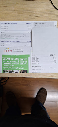 Read moreHad used empire before when I lived in corning and the service was good. But since moving to Watkins Glen it had been far below expectations. To start I canceled service at my old house and the lady on the phone said that she had canceled the service and someone would be by in 7 days to pickup our old equipment and I went in with our moving process. Well a couple months go by and we cal to sign up for service at our new place and turns out they never actually canceled the service at our old house even though we were sent a supposed final bill, I was told I had an outstanding balance of over 200 dollars which after talking to a customer service rep they said Iâd be contacted by their billing manger but they never contacted me back regarding the supposed outstanding balance. Even after all this I still decided to use their service for our new place and went with the gigabit internet package for $70 per month. We noticed we werenât getting anywhere near the advertised speeds closer to 20mbps up and 10mbps down. I proceeded to call and they said we had too many devices on our internet but i know it couldnât have been effecting it to the point where weâd only get less than a tenth of the advertised speeds, after continuous calls they finally discovered we werenât on the correct data profile for gigabit internet and that we were one the 30mbps data profile. So we had been paying extra a month for slower internet. And while they did take some money off our next bill, only $14, the whole situation has been such a hassle and very underwhelming. Not to mention the internet will cut out for about an hour at a time at least once a week. Sadly your only other option for and isp in the area is spectrum and theyâre just as bad...