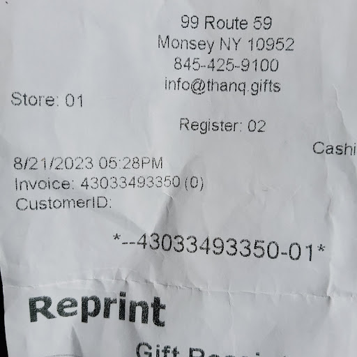 The service here... I wouldn't even call it service. There was a blonde old lady at the register. While there was a long line of people waiting, she left the register to go help a customer and show her around. It was 15 minutes before closing, and people were fidgeting. When she finally came back to the register, only because her cell phone rang and we all had to listen to her conversation on the phone, she asked my wife what she came for. She had come to return a gift with a gift receipt. According to store policy of 2 weeks return, she was still fine being that it was only 10 days. She looked at the receipt and threw it back to my wifes face saying:"are you silly? Do you think I would take it back when it was bought a few months ago??!" Other customers stood shell shocked at the rude behavior of the sales lady. One person even left the store from disgust. When my wife showed her the date of the receipt, she didn't even apologize. She kept saying that it's not coming up on the system and it can't be returned. When my wife told her that she doesnt know what the problem is, but came especially to main street to return this, she said too bad for you. You can come back tomorrow when the boss is here. Before my wife left, she told the sales lady calmly that she would appreciate not being treated rudely. She yelled after her like a maniac that my wife nearly started crying from being shamed publicly for DOING ABSOLUTELY NOTHING WRONG!! It's a disgrace for a Jewish store to treat customers like this. Honestly, I don't think I would ever step foot in this store again. Especially that you can find the same exact things for better prices just down the road at mimis linen. Honestly, It's not about my wife right now. She got over it. But STOP letting your salespeople be such a disgrace to our community and losing valued customers on the way. Unfortunately, I've heard from others about the terrible service here, but now I got to experience it myself. People buy gifts for a pleasant experience. Visiting thankq is anything but. BE CAREFUL BEFORE WALKING INTO...