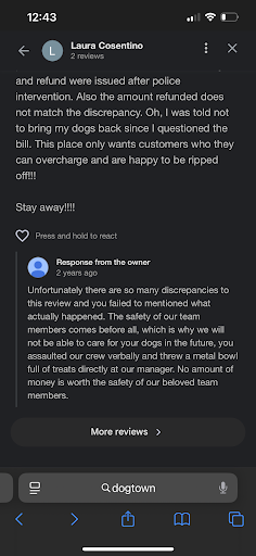 Read moreWe usually use the Hydrant Hotel in Riverhead but they were booked up. We were under the impression that Dog Town was associated with the Hydrant Hotel (which they formerly were) but they’re not. We dropped 2 of our dogs off at Dog Town for a 2.5 day stay and it was chaotic during the check in and we didn’t get a warm and fuzzy feeling. We reserved two separate kennels and individual play time so the dogs would be safe away from other dogs. Upon pick up, one of the owners asked if we wanted the dogs in two separate kennels. I asked where the dogs stayed for the past 2.5 days since he was asking me this question. One of my dogs was injured and would not put her rear leg down and cried throughout the night. Either Dog Town knew the dog was injured and didn’t tell us or they didn’t pay close enough attention to see that the dog was injured. A trip to my vet revealed that my dog had a sprain in her rear leg. Dogs get injured, that’s not the problem, but not being told about it was a major issue. I would not use Dog Town in the future, even if it meant staying home with my dogs instead...