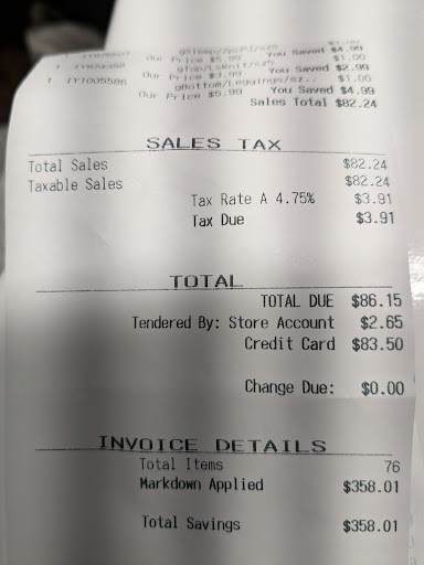 To give an example the amount they're willing to pay I brought in seven items totaling $240 retail if purchased from buy buy baby or $210 if purchased from Amazon. They offered $18 and change in cash or $22 in store credit. Every single item was brand new in the original packaging. Judging by the marked prices on their items they would be asking around $115 for these things, none of which were clothing items which they said they sometimes discount. I don't begrudge them their profit but it's taking advantage of people to offer so little in order to get a...