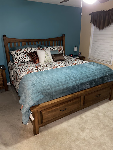 We ordered the Vaughn-Bassett Maple Road - Antique Amish Bedroom Collection with a slat poster headboard and storage footboard. We also ordered two nightstands, the 7-drawer dresser, and sweater chest. In addition, we ordered a King Koil mattress. The furniture arrived about 3 weeks later, and has absolutely exceeded our expectations. I love walking into my bedroom and seeing it!
