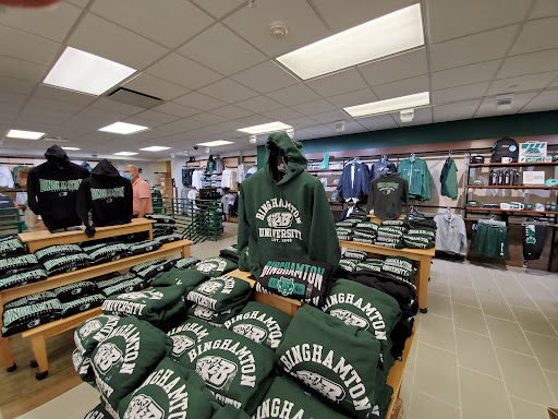 This is a nice facility, and it looks quite modern and fresh on the inside. However, in terms of school supplies, this place is a complete rip off. Often times, you can buy a new book online for the price of a used book here. Pencils and Pens are also sometimes double the cost of where they would be found elsewhere. Otherwise, on the positive side, they have a large selection of Binghamton University apparel and merchandise each with a variety of styles to choose from. Of course, all Binghamton "gear" sell at full retail value which often totals much more than a comparable item at a store like Target or Walmart. I do, however, recommend this place to get merchandise for the University, as such a selection of items with a Binghamton logo can be found exclusively here. But for school supplies, you are better off buying whatever you need from home including...