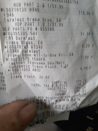 Read moreDo you see brake shoes? I do. Called this morning, "are my parts in?" "Yeah everything is here." "There's brake shoes that go with these." "Didn't you pick them up when you ordered thrm?" "No i Didn't get them when I ordered them because they weren't in stock." Are you stupid? I have to drive a half hour to get there and an 1/8 tank of gas up over the mountain. Obviously I'm buying brake parts, you think that would be important, but apparently Autozone employees don't know anything about cars. Thank you for contacting me and apologizing for the situation. I know you guys can do better, I've seen it. Maybe it was an "off...