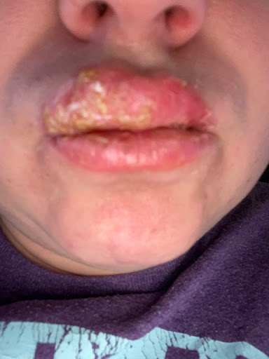 After several hours at urgent care I was prescribed antibiotics for the infection that actually helped healed my lips but I had side effects from the antibiotics that caused me to be numb in half of my body.