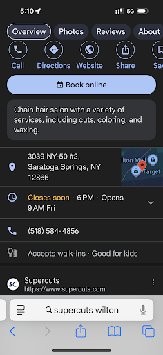 Read moreIt was more important to sit in their chairs chatting and scrolling through cell phones, than it was to cut my son’s hair...I scheduled an appointment to have my 4 year old son’s hair cut at 3:30pm today with a certain stylist (not mentioning her name here). When I arrived with my son for the scheduled appointment, I was told that it would be just a moment while she finished sweeping up the area around her chair...(There were 3 stylists on, only 1 customer who was already getting a haircut and no one waiting. So they were not at all busy.). A couple minutes later, while patiently waiting, I noticed that the stylist that I had scheduled with and another were both sitting in their chairs chatting away with one another with cellphones in hand scrolling through them. I waited patiently a bit longer, and they both, still just sat there, in their chairs, chatting away and scrolling through their cell phones. I had been waiting patiently with my son for over 10 minutes past the time of my scheduled appointment at that point. At close to 3:45pm when another customer came in, one of the girls looked up from her cellphone, got up from her chair, took the customers name, and then proceeded to take the individual back for a haircut...At that point, I got up, told them that I was leaving and walked out...