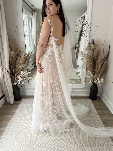 My experience at Garnish Boutique was absolutely a dream come true!!! This was actually my very first wedding dress fitting EVER and I walked out on cloud nine. There was plenty of parking at the building - both in front and back. Note- the store sign is on the front of the building but you have to walk to the side and up the stairs to get to the store entrance. My bridesmaids and I were greeted right away by the store owner Mia. She showed us to a beautifully decorated room with a comfy couch and table to put down our coats and bags. Mia then showed us each section of the store which was organized by designer and dress style which made it SO easy to look through! She even showed us that the tags had the prices clearly marked so that I would easily be able to stay in budget. I had no idea what I was really looking for when I came in but Katie (our dress consultant) made the experience the best I could ask for! Katie made me feel so comfortable with getting in and out of dresses and never rushed me. She was really so sweet and respectful! She laughed along with my bridesmaids and would listen to their advice while also making sure that I was really happy with what I was wearing. I thought I wanted a more fitted dress but Katie suggested I try on a Blue Willow by Ann Barge dress that was in a ballgown style. I was hesitant at first but as soon as I tried it on and walked out of the fitting room- a hush came over everyone followed by loud squeals of delight! This was the one!! The dress even had a gorgeous long veil that came with it and both the dress and veil were 50% off because they were on the sample sale rack! I was blown away by the fact that even though my bridesmaids pressured me to buy the dress, Mia and Katie did not once pressure me to make a decision right away. In fact, they urged me to put the dress on hold and consult my fiance and mother regarding the finances first. I was so thankful for that! I have not yet purchased my dress but am convinced that I will soon be a Garnish bride! *Also my appointment was scheduled for 11-12 pm but Mia let me stay to try on dresses until 1 PM!!! If you're looking for a wedding dress for the first time- be sure to check out...