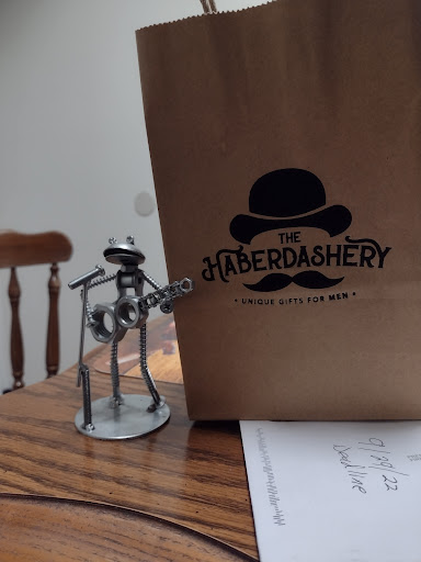 Read moreThis shop is totally cool. A lot of guy stuff that is really very artistic and unique. We bought my Artsy wedding ring here and it has drawn attention many times. The Metal art there is unbelievable, so, I also bought a Metal motorcycle that I love! I will come back again yearly to the Haberdashery from Greenville, Mi. It is worth my drive. Many more stores in the same Complex and or area, including Left Foot Charlies, the Winery, that...