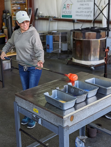 It was thrilling to have such attentive, hands-on instruction! It has to be really rare to have such a thing available and we feel privileged to have Art House Trinidad in our neighborhood. My friend and I can hardly wait to get our ornaments (which are finishing in the annealer) next Friday. We were able to pick our own custom colors and it will be so neat to hang a new heirloom.