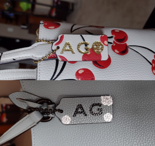 Ā Ā Ā Read moreI have had most of not all of my coach bags monogrammed here. I love this location! Many employees have the skills to do fun monograms, and some don't, so I would be aware as a customer if whoever is helping you insists every step of the way it will turn out poorly, believe them. I've had pebblestone leather monogrammed beautifully here before, but this last time a gentleman named Aaron helped me and while he said his skill level on the machine was low, I knew it wasn't impossible to do a legible, in line monogram on pebblestone leather like he insisted. I would like management to consider not letting an employee use the machine if they feel that unsure they can do it well (he seemed unsure and made many excuses as to why it would not turn out well before he was done) I forget the name of the woman who helped last time, but she did the blue tag in the picture. Aaron did the cherry. I'm not unhappy necessarily, but the excuses put me off from buying anything...
