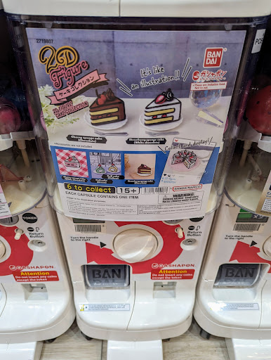 Read moreMy husband and I thoroughly enjoyed our visit to the Gashapon store tonight! There were so many machines with many varieties of toys to choose from. It was easy to use a credit card to get tokens for the machines, and we received a couple of cool clear bags to put our treasures in. They also had a really cute area where you could take pictures of your toys, plus bins where you could drop empty capsules, I assume for recycling. They said that there will be some additional Bandai items at the back of the store soon. I would recommend taking your time to view all of the varieties of items they are offering. Some are duplicated, which would be expected to fill that many machines, but others are not, and we almost missed some toys of particular interest to us. There was a nice variety of anime series represented, but I hope to see some additional titles...
