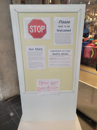 I saw a sign at the door, I read it, but I still went inside because I didn't see anyone in there. As I entered a lady asked if I had been there before, and I said no it's my first time here. She then escorts me to wait at the red line to wait.