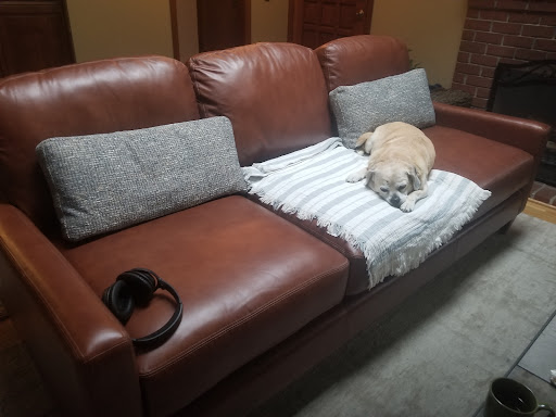 After watching our dog lie on the floor next to my husband's chair for 2 years now, I decided we needed a larger chair that could fit both of them. Once I decided that this chair should also recline, we headed to La-Z-Boy, because where else would you go when looking for reclining furniture?