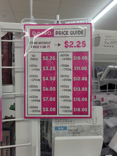 Ā Ā Ā Read moreEverything is over 2 times what the yen amount actually says so don't expect it to be as cheap as you would assume. Items on the low end that say 190 yen would be $1.30 but are $3.25. On the high end 1320yen should be around $8.94 but the store charging $18.. other than that it's nice, clean with cool dollar store type things.. Just bummed everything...