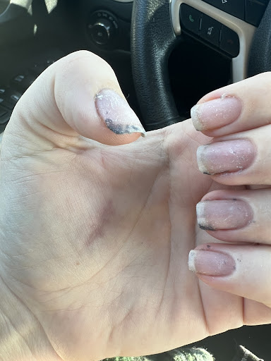 Read moreI had a horrible experience here. I’ve had gel nails for a long time, and the woman I got paired with did something I had never seen. She used this chemical to burn off the gel and used a metal hand scraper to painfully scrape it off (not the little machine or soak it off). She repeated this 5-7 times and it was extremely painful and aggressive. I told her it was hurting and she just started scraping harder. She then dropped the metal tool on the floor, used her FOOT to drag it over to her, picked it up and attempted to re-use it on my nails. I pulled my hands away from her and told her the service was ended. I went to the front and told the man what happened, and he demanded I pay $10 for the removal fee. I said she didn’t even take it off, hurt me, and used dirty tools and he said I still must pay. He didn’t even apologize. This is how I left the spa, my nails extremely damaged and chipping from her technique, nail polish and gel still there. I would recommend you stay...