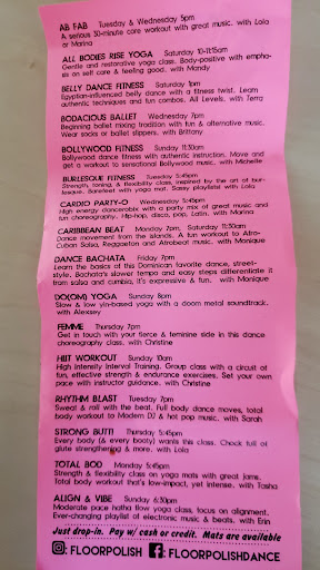 First time there and sadly will be my last. The class dance teacher is also responsible for signing dancers in and collecting payment. Class was suppose to be an hour long, but started 12 min late (because of late arrivals) and ended 6 min early (not sure why). I paid for an hour class and was expecting a full hour dance class (Cardio Party-O) but only got a 40 min class. I understand people are late, but class should not start after EVERYONE arrives (including the late ones), class should start on time because some dancers arrive on time and ready to go and would like a full hour work out! The dance teacher was fun and the music selection was exciting... but I was so frustrated the entire time because the class seemed to center around all the late arrivals... as of course they were up front and helping with the music selection. Not a professional atmosphere at all... not expecting ballerinas, but expecting a fluu one hour, fun dance, work out class led by an experienced instructor not later comers and buddies of...
