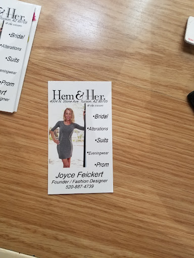 Read moreWhat an amazing and fun experience!!! I was recommended by a co worker to reach out to Hem and Her to possibly alter my wedding dress! I was told they had my personality and we would get along, I am a bit of an eccentric! Plus they are locally owned and I love supporting anything Tucsonian! My first impression was that Joyce and her husband were so amazing! They both are so enthusiastic and kind. Joyce also had an assistant which I do not remember her name but was equally amazing! So the five stars are for a job well done but also for the above and beyond customer service! My dress was a sample dress from David's Bridal, $600 (which is dirt cheap in the wedding dress world), so it had some damage and dings on it. But it was a diamond in the rough and I knew in the right hands it could be transformed into something beautiful! Joyce made it happen! I am 5'1 and dresses are made for giants lol! The bottom looked a bit like a parachute and had very delicate lace. I have a small waist but big hips so that also needed altering. There was some damaged lace and buttons. The bust area also needed to be changed. I also had my trains (I have a two layered dress) bustled. I ended up paying $495 for everything and Joyce added some extras for free. So all in all my dress was now valued at $1,200 which is still verrrryy cheap in the wedding dress world. MY DRESS LOOKS STUNNING!!! Hem and Her is an incredible and knowledgable business. I have read some of the negative comments and I think these people might be misinformed about wedding dresses and alterations. $200 is the beaaarr minimum price but a bit of an impossibility. If you have a perfectly fitted garment with a sturdy material that just needs a simple hem.... then maybe that is a good price. Usually with a dress on sale, which is usually a sample dress, they do not share all the damages that will need to be fix, or how delicate the material is, or other aspects involved. I was fully aware my dress needed extra love and felt I got an amazing price and unbelievably wonderful costumer service!! These people are fantastic and so is...