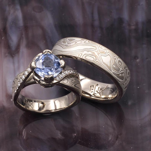 My husband and I shopped around many jewelry stores throughout Arkansas, had a couple of jewelers sketch us a design, but none even compared to what I had seen at Krikawa's webpage. My husband asked why I was dragging my feet, and I finally confessed my deepest wish for a Mokume Gane ring(s)from Krikawa. I showed him their website, and he really liked the Mokume Gane, too. We prowled through the web looking for jewelers in Arkansas that made Mokume Gane rings--No one does and most didn't know what it was either. The out-of-state jewelers that design Mokume rings did not compare in beauty to Krikawa's rings. Despite all the positive reviews of Krikawa, we were both worried about designing & purchasing jewelry over the internet, as there are many unscrupulous people in cyberspace, and we wanted to see Mokume in person before committing to buy anything. My husband committed to a ring budget to fit Krikawa.