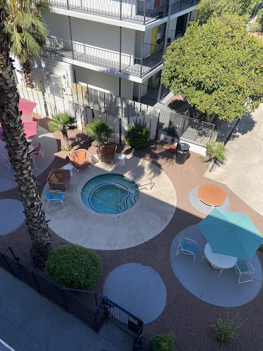 The building that the apartments are in is 4 floors high. There is an elevator which makes it easier when you have groceries and live on the 4th floor. The rooms are okay, and the hallways look like their from a horror film. They desperately need a makeover. They do have a lot of amenities though such as a reasonable sized swimming pool, hot tub, workout room, theater, and study room (although wifi in that room was horrible and the printers never worked). The office staff was friendly but sometimes a little too friendly. One would hug me every time he saw me so I avoided him whenever I could.