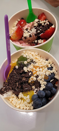 The self-serve setup is so much fun — you can mix and match flavors and load up on as many toppings as you like. The fruit is always fresh, and the candy and syrup options make it easy to create the perfect treat.