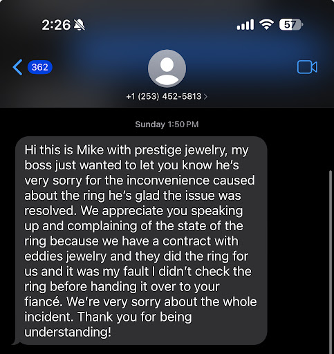 After we dropped the ring off, Prestige messaged us saying that the initial job was actually done through Eddieās, who they contract with.