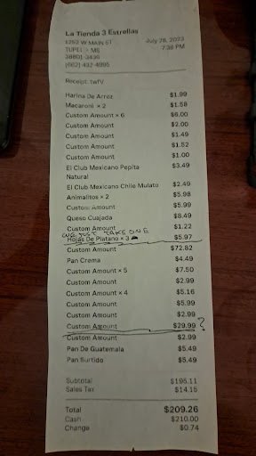 Read moreTengan cuidado la mayoria de las cosas que venden no tienen precio y cuando te cobran solo adivinan y cobran de mas. Tendre que ir a poner una queja al departamento del consumidor. Me aparece que me cobraron 29.99 de no se que cosa. Llevare este recibo al departamento del consumidor. Tengan cuidado revisen bien lo...