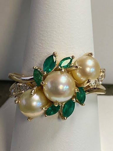 This place is totally AWESOME!! Great Pricing!! I have a little story behind this review. Here we go..when I was about 15, I went to Sea World, where they had a place to pick a clam and get a pearl. I bought 2 clams and got 3 pearls. I put them in a jewelry box, and that's where they stayed. Advance the story to now I am 60 something and my parents past away. In the mix of it all went through jewelry box and found those pearls. I wanted a new birthstone ring, so I decided to have a ring specially made with my birth stone and the pearls with some of the money I inherited. Since my parents and I were on vacation when I got the pearls. It would all tie in together. I took a picture of what I liked with some changes. They special made this ring from scratch. Kept me informed on what was happening with the ring, asking my opinion every step of the way. I WOULD HIGHLY RECOMMEND THIS PLACE. The ring turned out beautifully!! Am so very pleased with the service, time frame, and price!!! I also needed new prongs on wedding ring. They were the cheapest in town and did an awesome job on that ring. Posting a picture of the beautiful ring they made!!! Whatcha think? ...