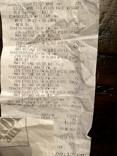 So I cancelled my ordered, and I ordered over $4,000 in appliance elsewhere, and the competition price matched every item. The only thing Home Depot got from me was $1,100 that I paid for blinds and security cameras.