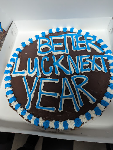 This year, I ordered online on a friday for pickup the next monday at 5:15pm. When I arrived right at 5:15pm, I was told they had no order for me. The employees asked repeatedly if I had mistakenly placed the order for the Northport location and only stopped asking when I showed them the email receipt. One employee then openly voiced her anger at an employee who was not there for messing up this and other orders. She offered to make it on the spot, but could not make it sugar cookie, as I ordered, because one was not yet baked and ready. She did it quickly, which I appreciate, but the letters of the message were in all caps, squeezed together print. The message was "Better Luck Next Year", so it's not like I asked them to fit a paragraph on the cake.
