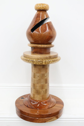 Moreover, Mat the Maker is a visionary and artisan in his own respect and enjoys opportunities that permit him to employ his imagination on top of being a skilled woodworker and well-rounded maker. Mat and I have collaborated on projects over the years, and I have brought his original work home and into my studio gallery—most notably, my signature chess piece and logo, a 3’ handcrafted bishop.