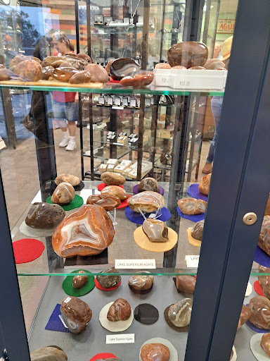 Our family has been coming here since my kids were little, all three of them are now in their 20's and still love to collect rocks & fossils! When traveling together my Mom & I try to stop in once a year, but it's just not often enough!! Sadly I noticed that there has been a few poor reviews that deal with the owner's attitude towards some customers. I suppose he can come off as being a bit gruff or aloof but if you take the time to engage him in conversation, share your agate, rock or fossil interest and ask questions he really is a very kind and knowledgeable person, in fact he's a well known author on Minnesota Agates, we've got one of his books! And my daughter loves their Cockatoo!! Sometimes I think that today's parents forget that their young children should be closely supervised (plus be respectful), especially in a family owned shop that carries fragile items. If you haven't paid for it yet, you shouldn't allow your child to carry it around. If it's a small rock or fossil well then I know that that isn't a problem because my kids did that all the time, even paid with their own allowance at times. In fact my youngest son bought his first Megalodon Shark's Tooth here and the owner was so helpful and explained everything from the quality of the tooth, the size of the shark on up to it's value!! My son was only 9! They have wonderful displays, also selling pottery and other items hand made by locals. I've gotten a couple of bowls in past years that I use to display some of my large polished semi precious stones. Their prices are very reasonable and competitive with the online Rock & Fossil Market.