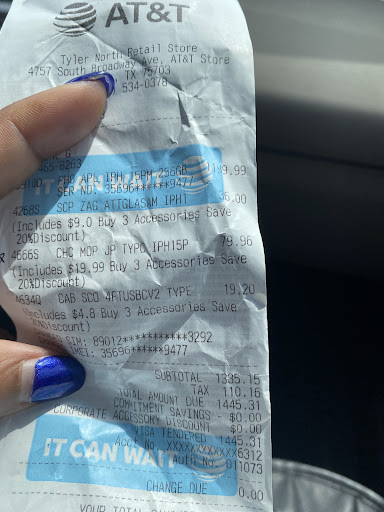 Ā Ā Ā Read moreI'm very disappointed that the AT&T insurance I've been paying for for 2 years was EXTREMELY difficult to use. Your way of handling is repulsive. I did not get the insurance on my new phone. Honestly I made the decision to get a new phone because I don't have the time or inclination to go through the drill you make people go through to use it! As far as apple goes if it were not for the fact everything I gave us Apple I would have purchased another brand. So your people in Tyler did their job well and were nice to deal with but I have little regard for AT&T and Apple!! I would not recommend either to a perspective customer.!