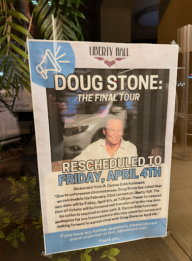 I purchased tickets to see Doug Stone at Liberty Hall and was really looking forward to the concert. Unfortunately, I showed up on the night of the event only to find a sign on the door saying it had been rescheduled — with no prior notice or communication whatsoever.