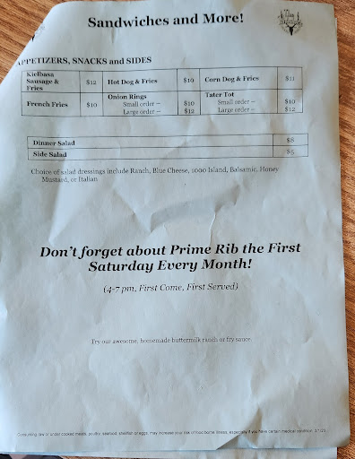 Read moreVery local rustic Bar/Tavern. The only permanent place in town that serves food. Counter seating and tables - an adjacent room with additional seating. Bathrooms on the small side. Somewhat of a limited menu. Photos of menu as of May 2023. My wife and I both enjoyed our meals. WiFi beyond excellent. Staff very friendly. Two kinds of bottled beer available- a few draft and the rest are canned. Mon, Tue and Wednesday their closed. Thursday - Sunday 11:am to when...