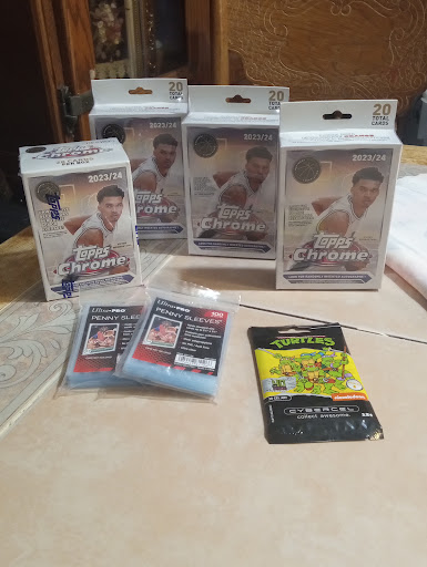 Read moreI rarely go to GameStop as I don't play video games like I used to. However, I kept seeing YouTube sports cards breakers posting their videos of the new 2023/24 Topps Chrome Basketball products. A good majority of them said they found the new product at their local GameStop store. As soon as I walked into the store I found exactly what I had been looking for! I bought all of the 2023-24 Topps Chrome Basketball products they had available (3 Hanger Boxes & 1 Blaster Box)! At checkout, I also spotted single packs of the 2024 Cybercel Teenage Mutant Ninja Turtles Cards. My son has been into the TMNT lately so I figured it to be the perfect time to introduce him into the fun hobby of...