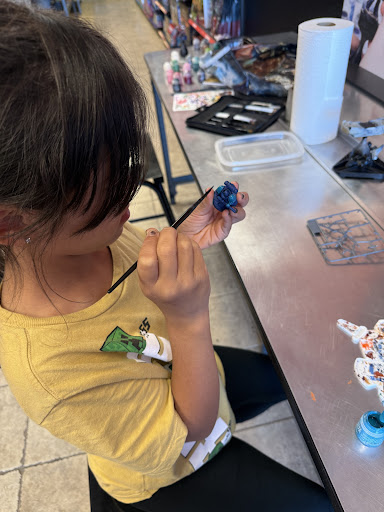 Since it was my daughter’s first time in, Nate gave her a miniature to build, offered helpful tips, and encouraged her along the way. Once she had it put together, he even swapped it for a primed miniature and provided paint so she could start her first painting session. He continued to check in on her progress, giving her little tips while letting her have fun and make it her own.