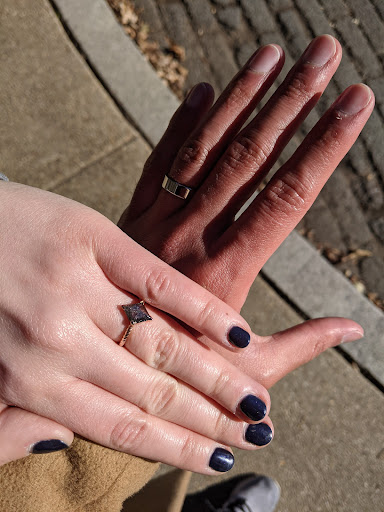On my partner's and my search to select engagement rings, we looked at a few places. When we found L. Priori, we loved the vast and unique selection of ethically-sourced gems (including a broad selection of different salt and pepper diamonds) but it was really L. Priori's approach that sealed our decision. Brooke had such a great technique for helping us to both realize what we wanted in our rings, something we did not find at any other jeweler. She led us in the creation of two custom rings for us to propose to each other - a flat white gold band and a kite-shaped salt and pepper diamond ring with braided rose gold band.