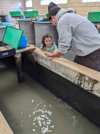 We were camping in the area and wanted to check out the fish hatchery. It was a great experience. We asked one of the workers a couple of questions, and he asked if our group of 8 adults and 2 small children would like a tour. He was very knowledgeable and was able to answer all of our questions. He even gave the kids free food for the trout. The facilities were very clean and inviting. The aquarium has a good selection of fish...