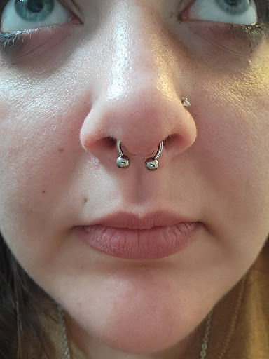 I looked around at a lot of different shops, read reviews, and scared myself to pieces watching nose piercings on YouTube. Then, I found No Name Tattoo and started reading reviews. I read a few that highly recommended Chino, so I figured I'd call and ask my three good questions and my 10,000 ridiculous ones.