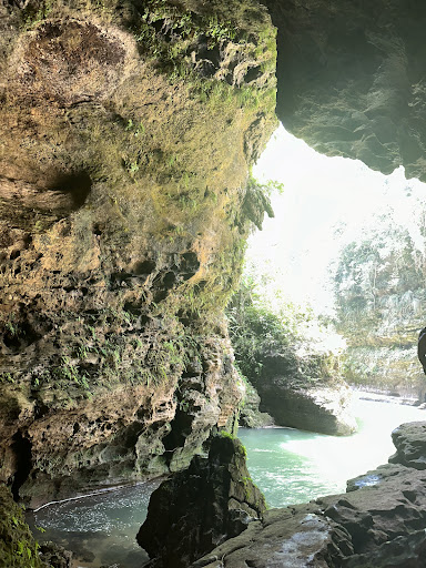 The tour begins with being fitted for safety equipment including a helmet, headlamp, and personal flotation device. A short drive in a van takes you to your starting point where you hike into the forest. Marcos gave us information about native plant species and the family that owns the land around the river. After the short hike we took inner tubes through the cave - a memorable, relaxing experience. The cave is massive and so peaceful. After tubing, you get plenty of time to swim in the pools and jump from some cliffs.