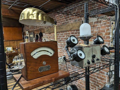 I stopped at two shops at the former Stanley Woolen Mill. One had "Primitives" in its name, and was about half antiques and the rest articles - mostly decorative - in a primitive or country style. Some of these were window treatments. There were also handmade soaps and the like. They carry quarts of paint in antique colors. The Stanley Mill Antiques has two floors that I visited. The entry level floor is a variety of smaller tables, boxes, chests, baskets, horse hames, and numerous small articles of great variety. The lower level contained a few larger tables (seating four or six), some chairs, and quite a variety of old tools. There were also sleds, fishing rods, and other recreational goods. (I don't have that much knowledge, but it looked like there were some valuable antique things along with more recent merely "used" items.) I was surprised to see some wood shop equipment - drill press, a band saw - all old but in decent shape. I was simply reconnoitering the two shops, but they look like good places to find interesting and...