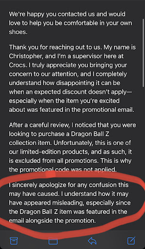 I wanted to return items that were purchased online and was told they could process the return but I would only get the item price not the sales tax paid unless I sent them back via mail. I buy a lot of items online and never had a retailer not be able to refund the tax. It says nothing about this on their website and when I called Crocs customer service they said that should not be the case. Wait time was annoying. There were three people at the counter but only one was actually at a register helping a customer. Another associate finally helped me but after I stood there waiting. Lastly, one of the associates said, wow these shoes are really big. Ok…kind of a rude thing to comment in front...