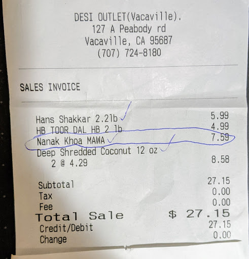 I stopped by store and I spoke with Daljit-ji, Deol-ji's wife and she told me no problem to check. I did and all the Nanak Khoya are all expired with dates of either March 2022 or April 2022!!! I let Daljit-ji know and asked for refund of $7.59, which was given—no questions asked.